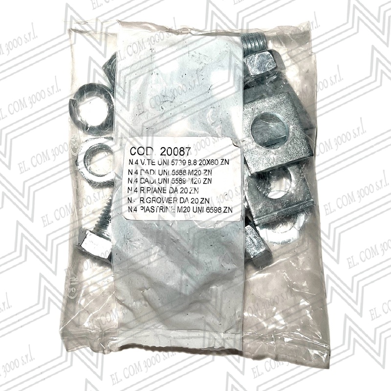 KIT VITE M20X60 (4 VITI + 4DADI + 4 DADI BASSI+ 4 RONDELLE + 4 GROWER + 4 PIASTRINO)