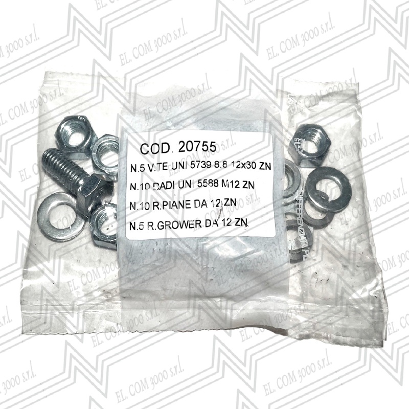 KIT VITI MA12X30mm (5 VITI TF8.8Z + 10 DADI + 10 RONDELLE +5 GROWER)