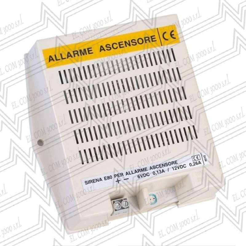 La sirena E80 è composta di un altoparlante e di un controllo elettronico chiusi in scatola di plastica; il circuito non ha contatti perciò è difficile a guastarsi; la sirena produce un suono bitonale, forte ma non assordante da vicino e ben udibile da lontano.