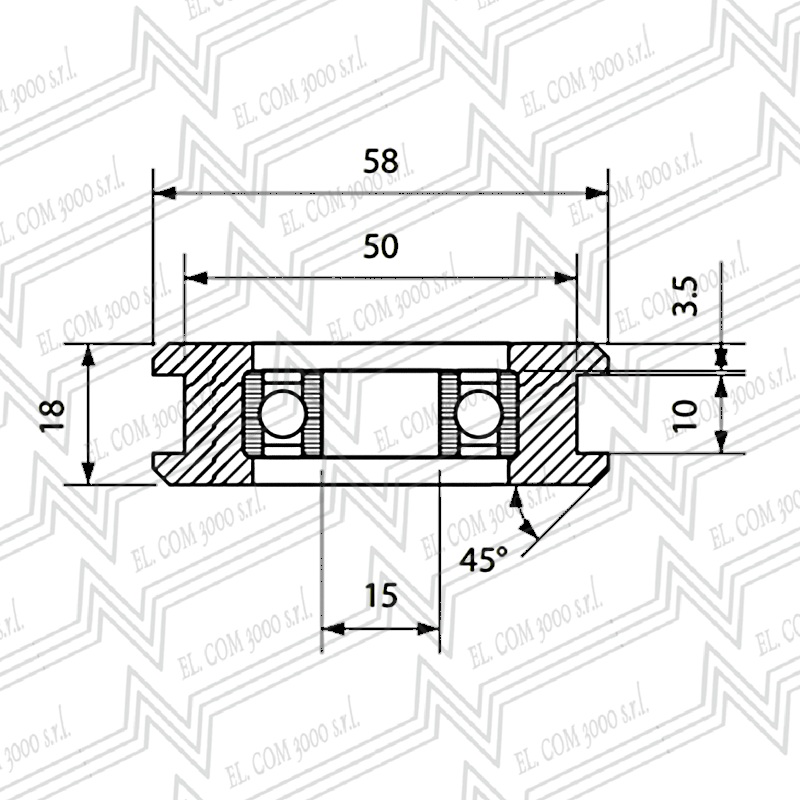 RUOTA NYLON+CUSCINETTO D.50X10X15mm