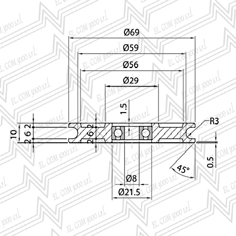 RUOTA NYLON+CUSCINETTO D59X6X8mm