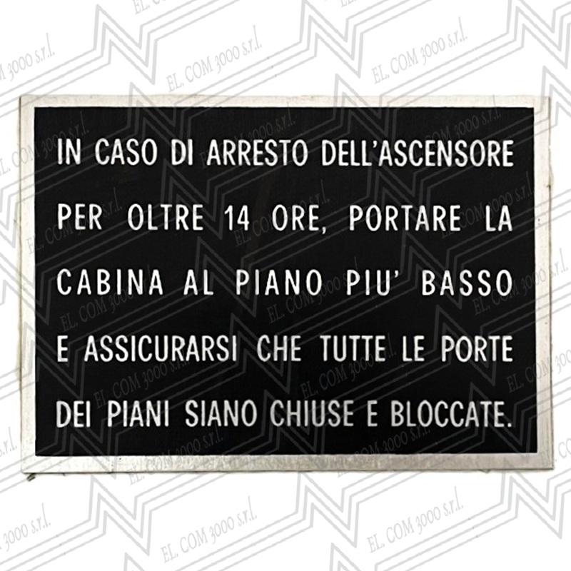 TARGA IN CASO DI ARRESTO DELL'ASCENSORE PER OLTRE 14 ORE - PER IMPIANTO OLEODINAMICO 110X80mm