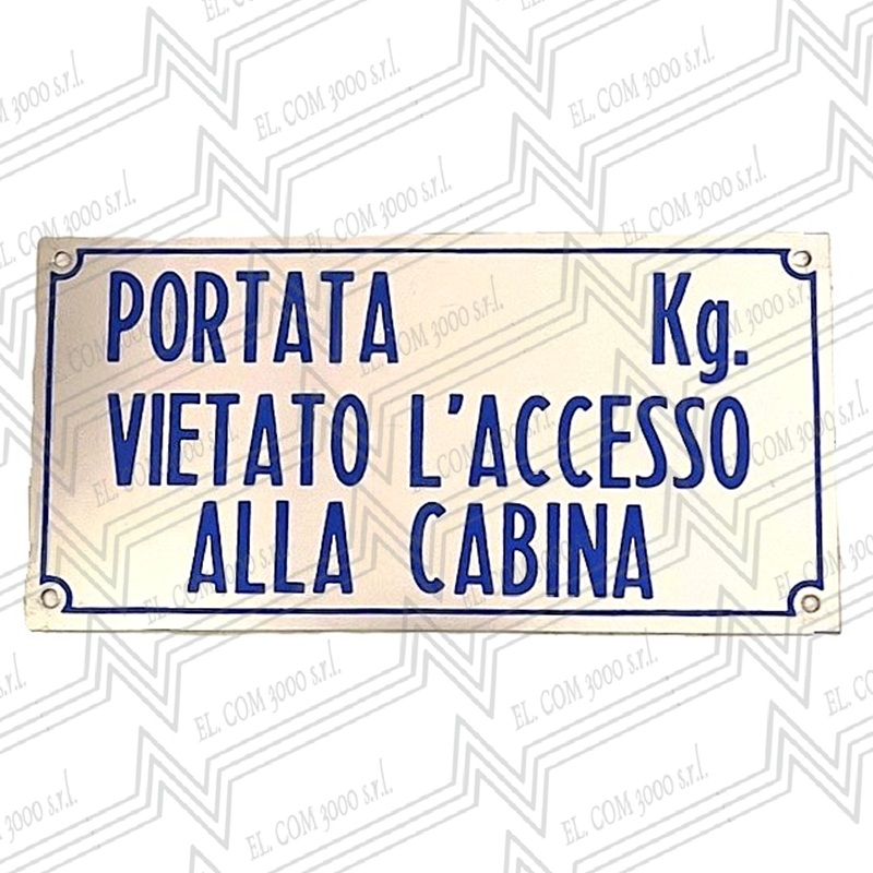 TARGA PORTATA ... KG VIETATO ACCESSO ALLA CABINA