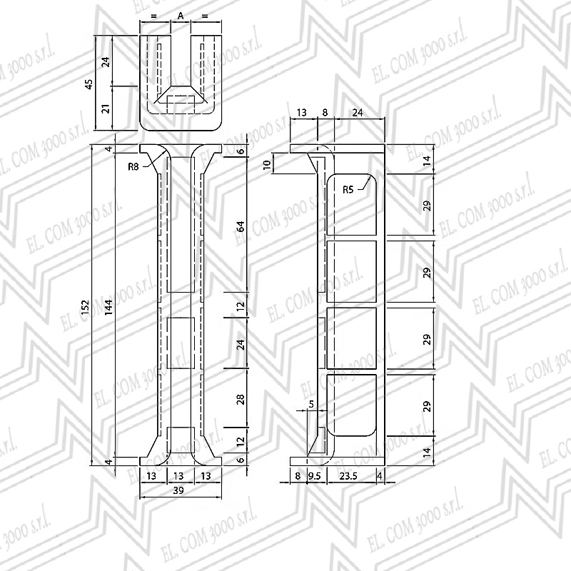 GUARNIZIONE PATTINO 144X22X9,5mm - TIPO BASSETTI